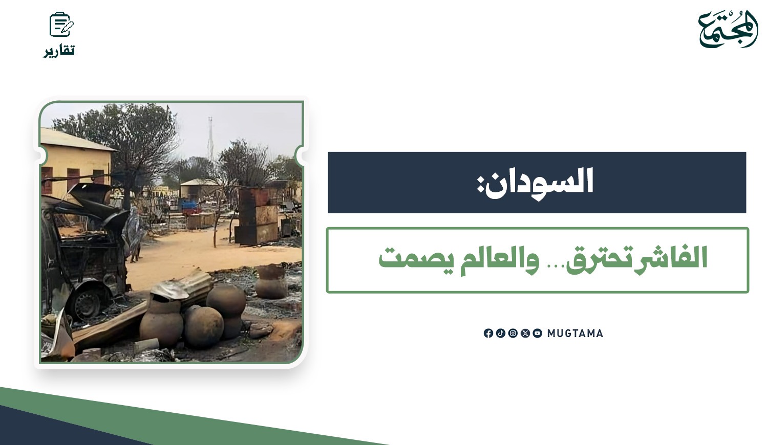 إلى أن الأوضاع الإنسانية في الفاشر بلغت حدًّا مقلقًا؛ فتقرير حديث لـ«MedGlobal» أفاد بأن أكثر من 90% من المنازل في الفاشر تعرضت للتدمير أو