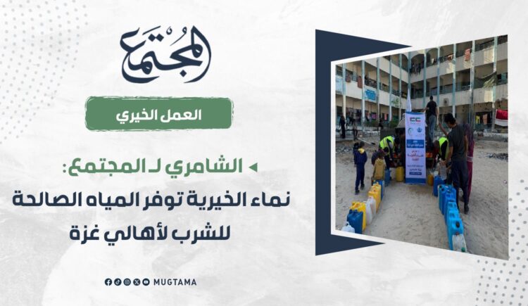الشامري لـ«المجتمع»: نماء الخيرية توزع المياه على النازحين في غزة
