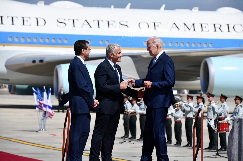 وقال بايدن: "لن أنسى الجلوس بجانب رابين، وعندما أنظر إلى الماضي وأدرك أنه كان لي شرف عظيم لأنني كنت جزءاً من تاريخ هذا البلد.!... أنا فخور بالقول إن علاقتنا بدولة "إسرائيل" أعمق وأقوى من أي وقت مضى، وفي هذه الزيارة سنقوي علاقتنا أكثر! وأشارت صحيفة هآرتس العبرية أن بايدن ورئيس وزراء الاحتلال سينشران، في ختام الزيارة، بياناً مشتركاً حول التزام الولايات المتحدة بالدفاع عن أمن الكيان، وسيتضمن البيان المسمى "إعلان القدس" التزاماً أمريكياً بمنع إيران من حيازة أسلحة نووية. وتعهداً بالحفاظ على قدرات كيان الاحتلال وتعزيزها لردع أعدائها والدفاع عن نفسها في مواجهة أي تهديد أو مجموعة من التهديدات!