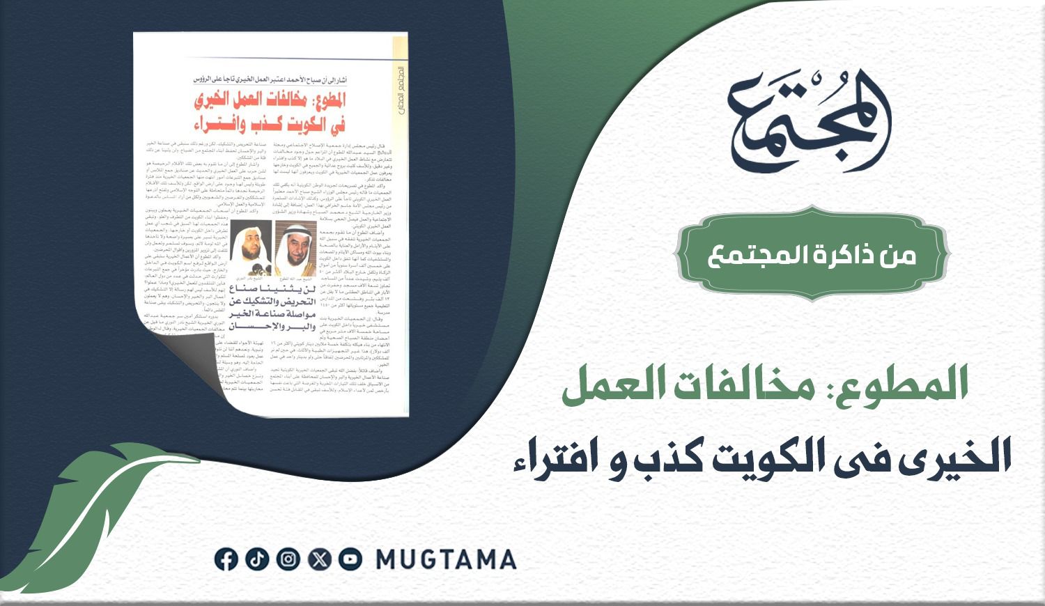 قال رئيس مجلس إدارة جمعية الإصلاح الاجتماعي ومجلة «المجتمع» عبدالله المطوع: إن المزاعم حول وجود مخالفات تتعارض مع نشاط العمل الخيري في البلاد ما هو إلا كذب وافتراء وغير دقيق، وللأسف كتبت بروح عدائية والجميع في الكويت وخارجها يعرفون عمل الجمعيات الخيرية في الكويت ويعرفون أنها ليست لها مخالفات تذكر.