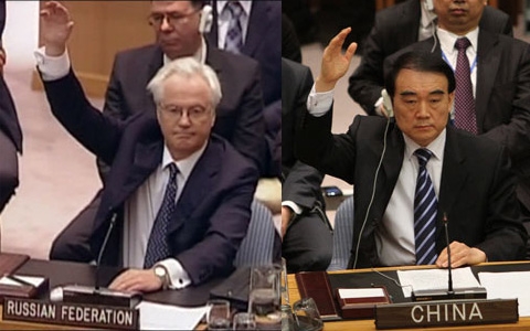 وتتمتع كل من روسيا والصين والولايات المتحدة وفرنسا وبريطانيا بحق النقض (الفيتو) في مجلس الأمن.