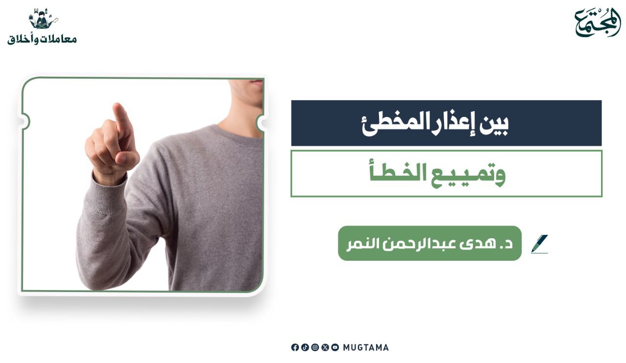 ومن الخطأ أن يُظنّ أنّ التماس العذر للمخطئ يقتضي السكوت عن غلطه أو إحاطته بهالةٍ من التفهّم المبالغ فيه، لأنّ هذا يُفضي إلى إبطال فريضة النصيحة وتغييب وظيفة التوجيه، فالإعذار المشروع إنما يكون لمتعلمٍ جادٍّ أو مكابدٍ صادقٍ، يقع خطؤه عن اجتهادٍ أو جهلٍ لا عن استخفافٍ أو تهاونٍ، أمّا التماس الأعذار لمن لا يُبالي بخطئه، فليس من الرحمة في شيء، بل هو ضعفٌ وتقصيرٌ في أداء الأمانة.