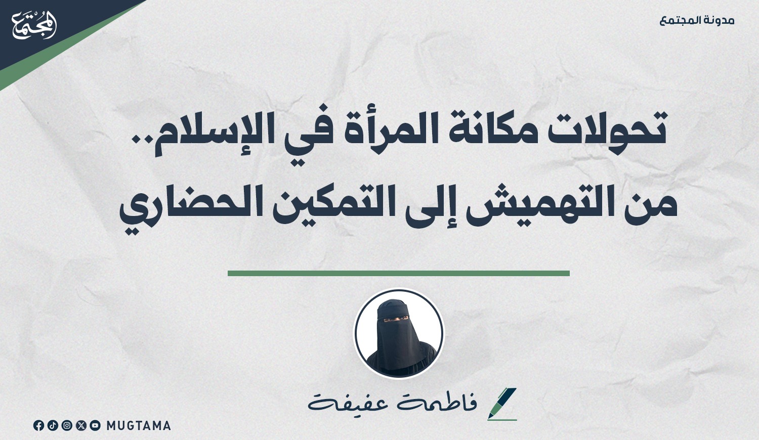 أو تطبيقه الخاطئ، فالمرأة في الإسلام لم تكن يوماً هامشاً أو زينة عابرة، وإنما كيان