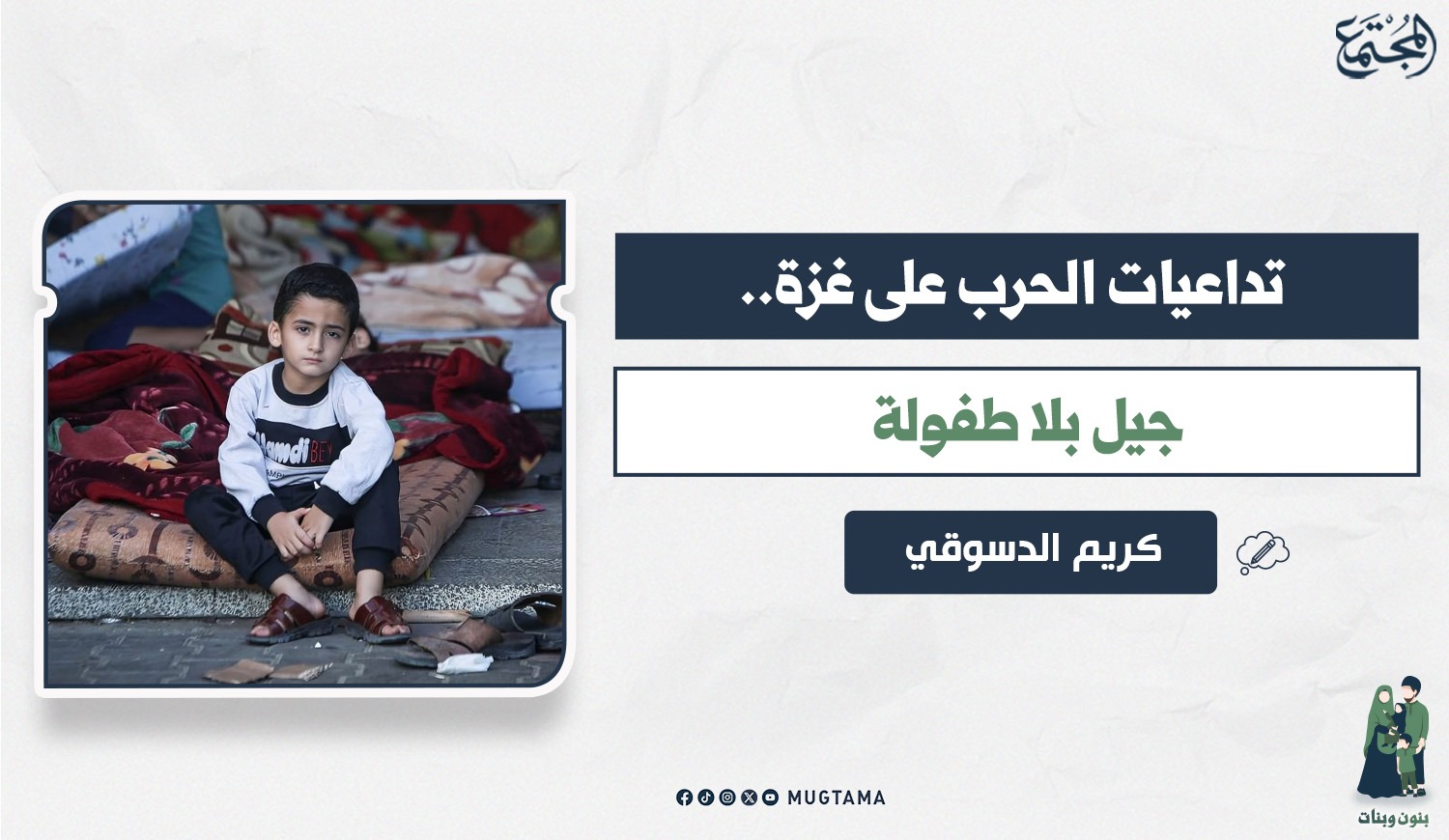 مجتمعاتنا ستعاني من ظاهرة وجود براعم «مسلوبي الطفولة»؛ إذ يصبح الواحد منهم أكبر