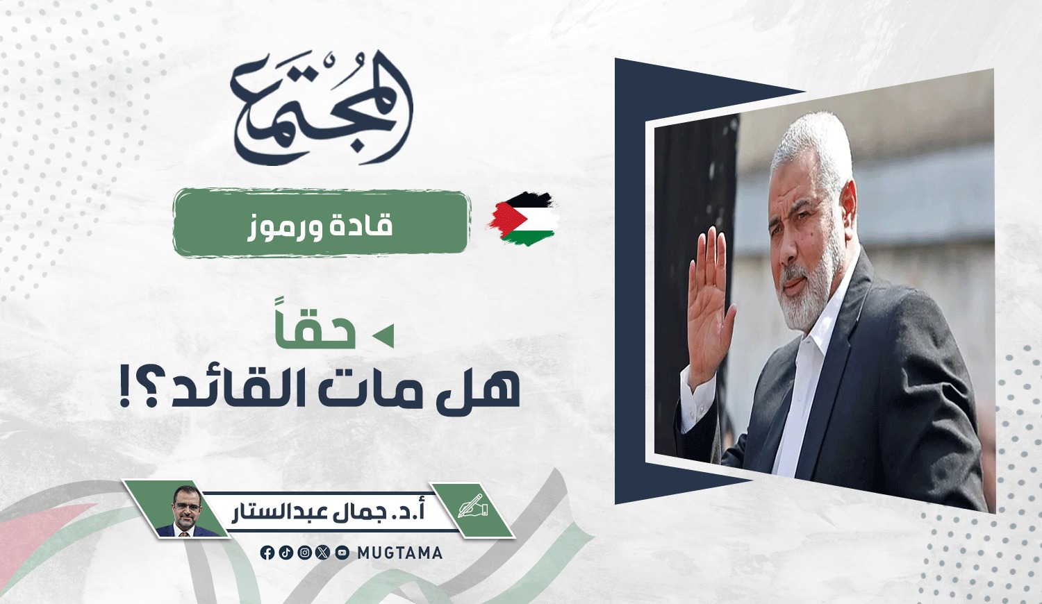 تلقيت فجر اليوم خبر استشهاد القائد المجاهد أبي العبد إسماعيل هنية؛ فانتابني فزع وألم ودوار، ثم هرعت إلى منصات الأخبار أستطلع حقيقة الخبر وتداعياته، وبعد مضي وقت ليس قليلاً في المتابعات، عدت إلى نفسي متسائلاً: ما هذا الفزع الذي انتابك؟! وما هذا الدوار الذي أصابك؟!
