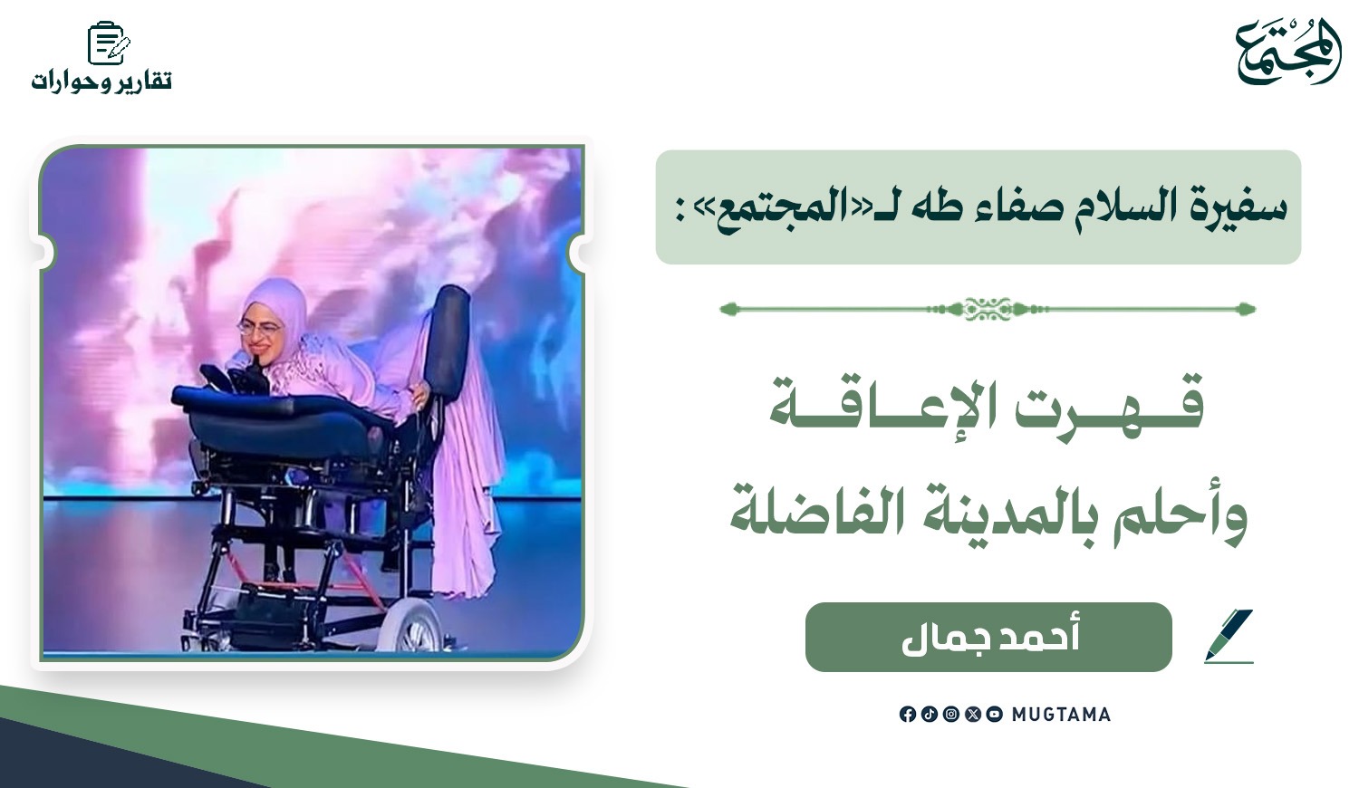 سفيرة السلام صفاء طه لـ«المجتمع»: قهرت الإعاقة وأحلم بالمدينة الفاضلة