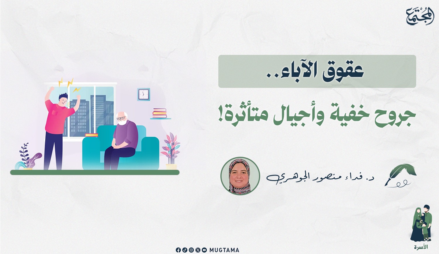المجتمع: حين تتأثر الأسر؛ يتأثر النسيج المجتمعي بأكمله، ويؤدي عقوق الآباء إلى