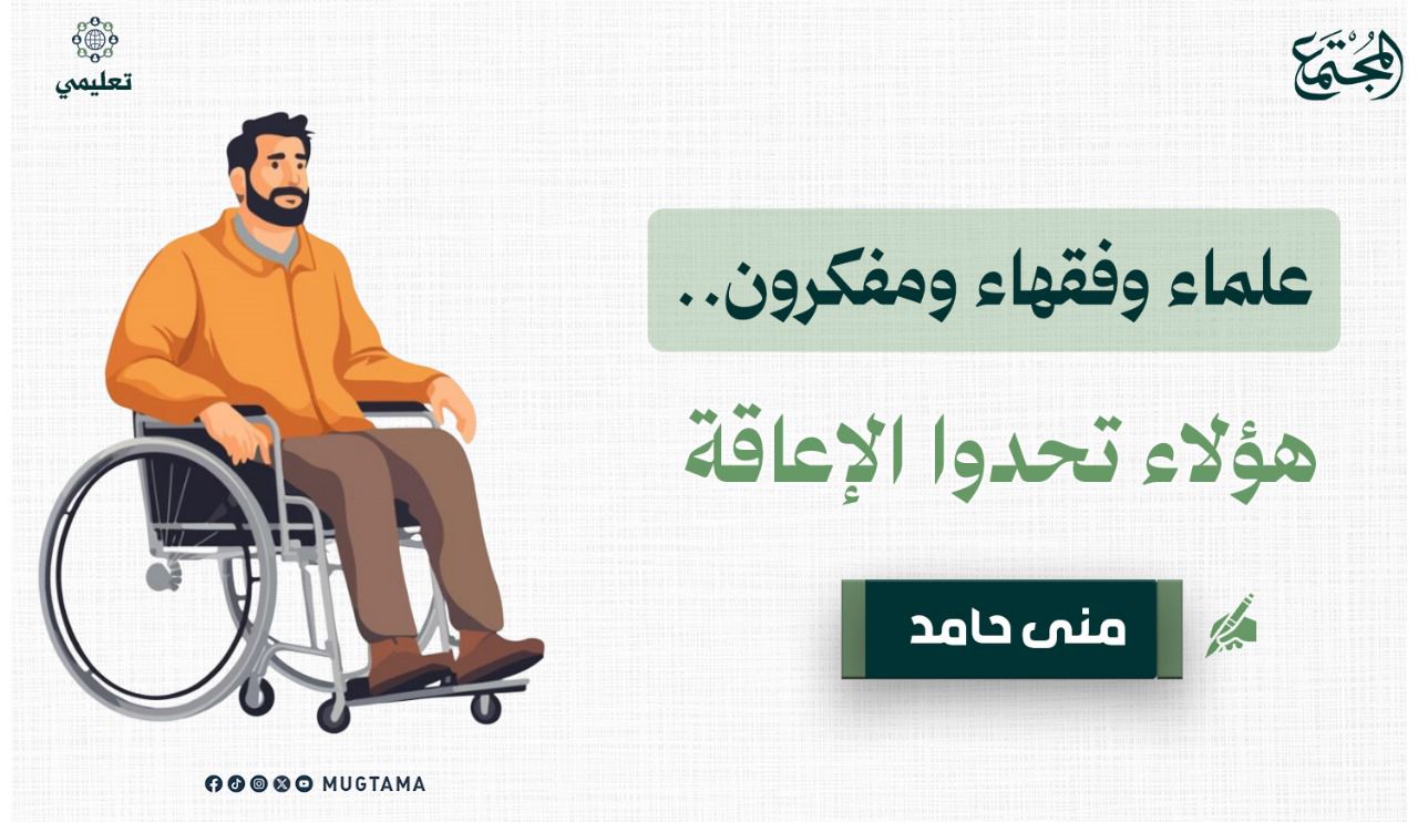 في ميادين المعرفة والعلوم، ولم تكن إعاقاتهم يوماً نقصاً في قيمتهم الإنسانية، بل