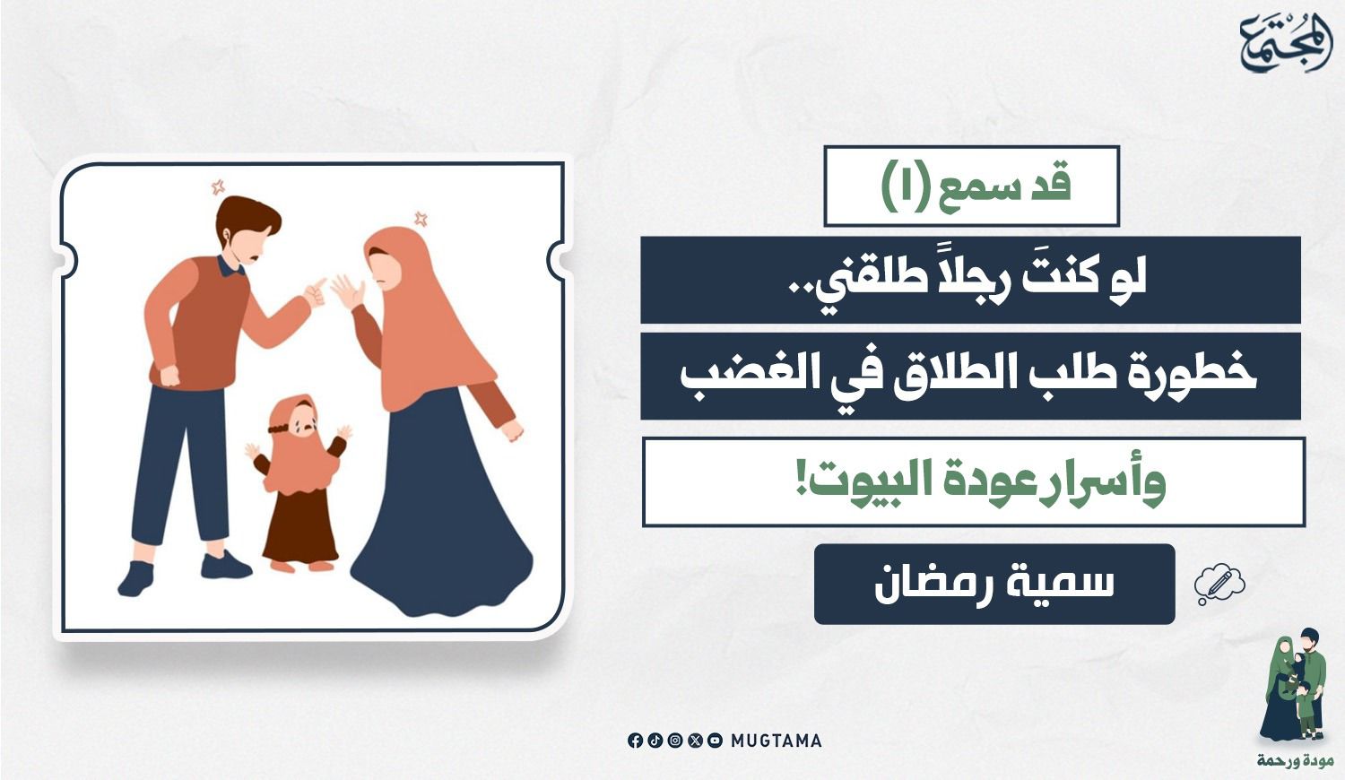 لو كنتَ رجلاً طلقني.. خطورة طلب الطلاق في الغضب وأسرار عودة البيوت!