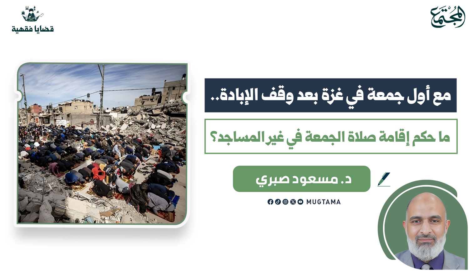 صلاة الجمعة، وبخاصة في مثل هذه الأحوال التي يعيشها أهل غزة من تهدم المساجد وصعوبة