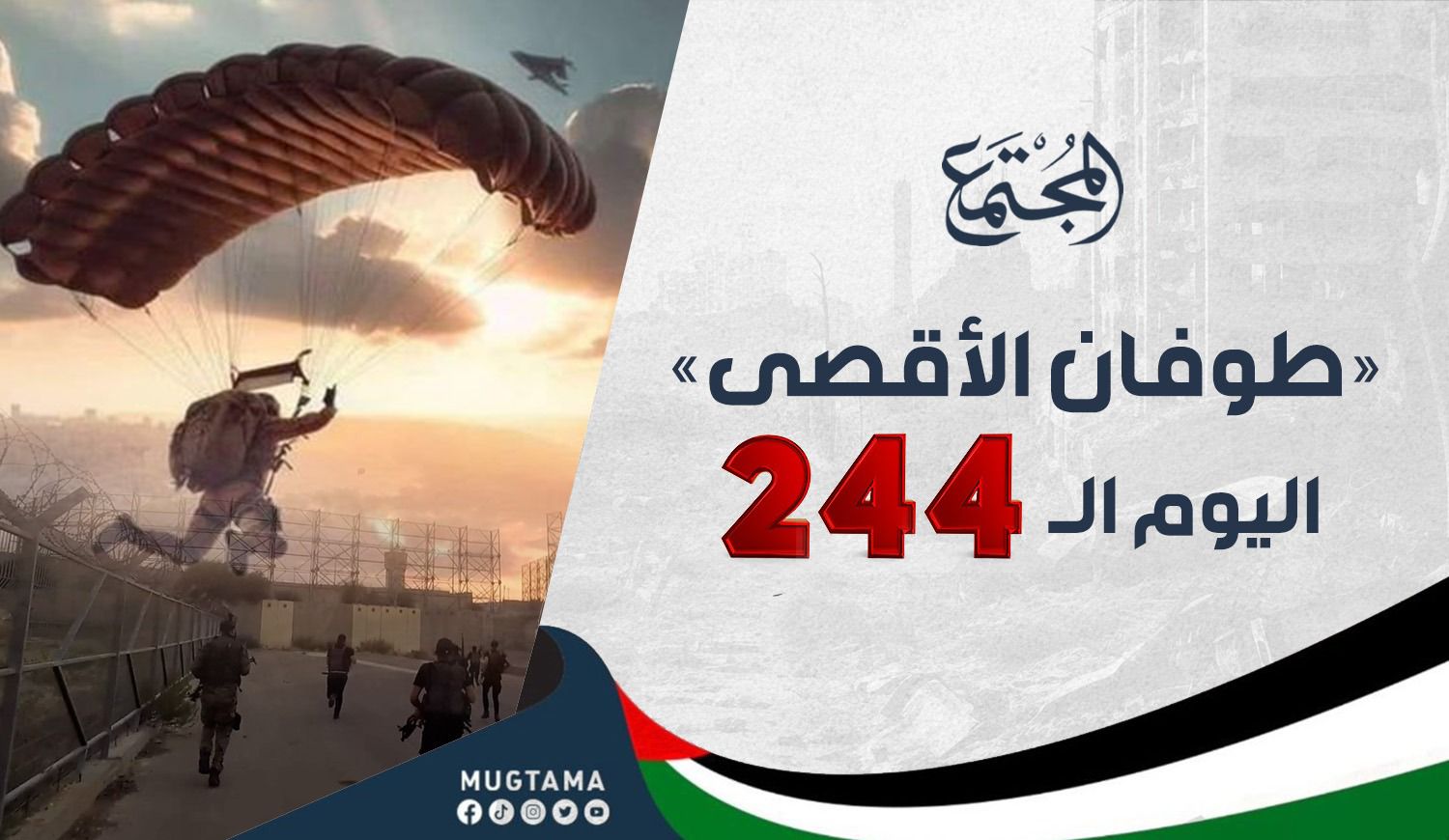 دخلت عملية «طوفان الأقصى» يومها الـ244 وسط مواصلة قوات الاحتلال الصهيوني ارتكاب حرب الإبادة الجماعية في قطاع غزة، عبر شن عشرات الغارات الجوية والقصف المدفعي ومجازر دامية ضد المدنيين.