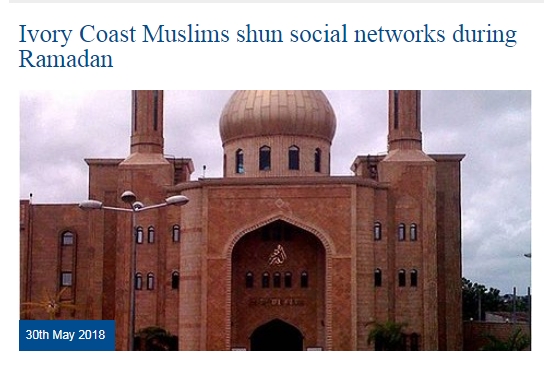 قرر بعض المسلمين في ساحل العاج حرمان أنفسهم من شبكات التواصل الاجتماعي لتخصيص مزيد من الوقت للشعائر الدينية خلال شهر رمضان المبارك.