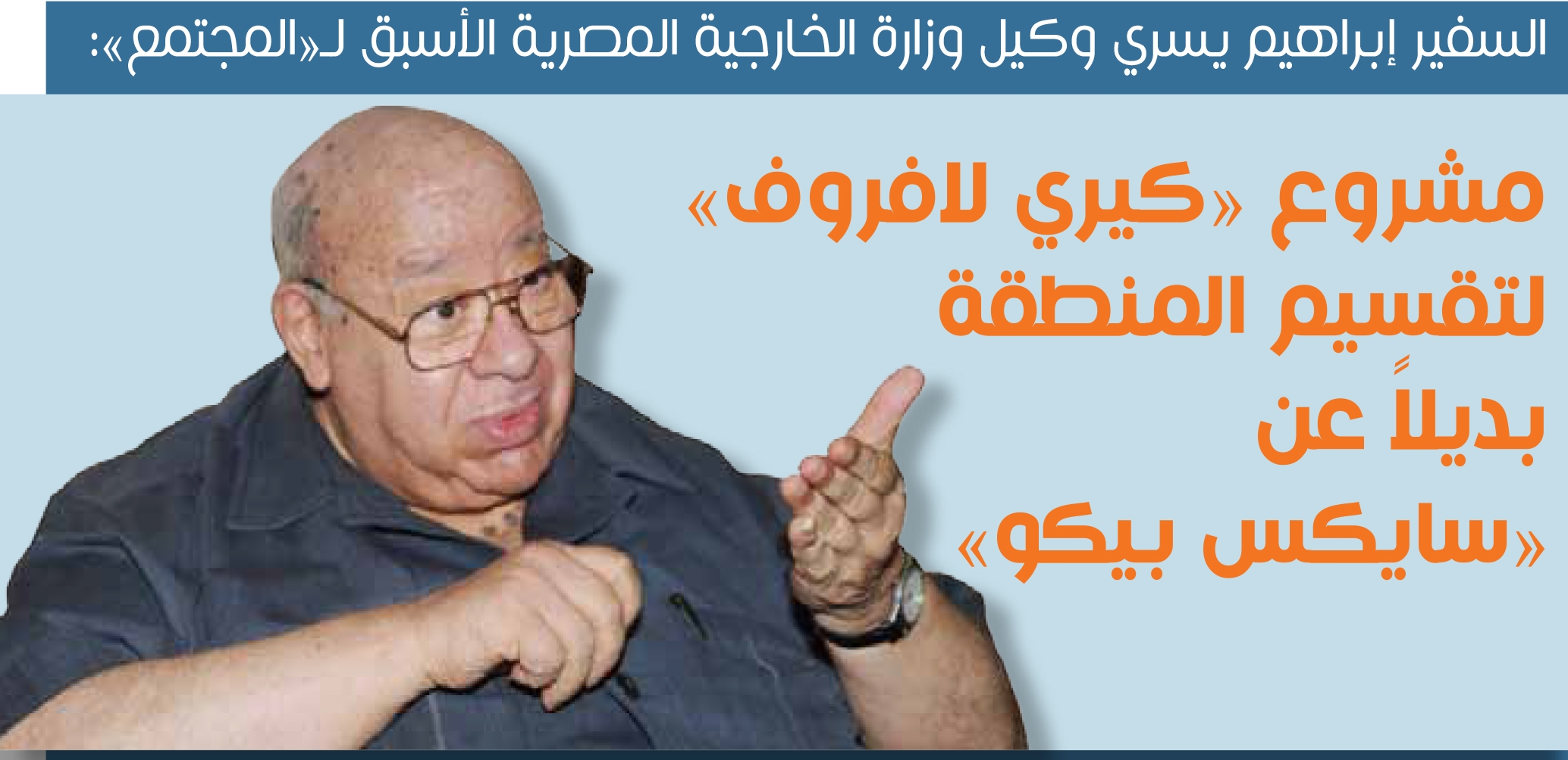 قال السفير إبراهيم يسري، وكيل وزارة الخارجية المصرية الأسبق: إن المنطقة العربية دخلت في طريق صعب ومنحى خطير يعكس نوايا جادة لتقسيمها وتفتيتها، إن لم يكن بدأ بالفعل من جانب القوى الكبرى خاصة الولايات المتحدة وروسيا، وهو ما أطلق عليه السفير يسري مخطط «كيري – لافروف» على غرار مخطط «سايكس – بيكو» في بداية القرن الماضي؛ حيث رأى أن التقسيم أمريكي روسي أوروبي من خلال استخدام الورقة الإيرانية، وإحداث صراعات طائفية بين الشيعة والسُّنة، وبداية تقسيم طائفي ثم التقسيم.