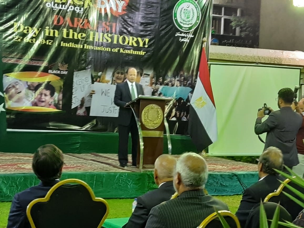 جاء ذلك خلال كلمته أمام الندوة التي عقدتها السفارة الباكستانية في القاهرة بعنوان "27 أكتوبر.. اليوم الأسود لكشمير.. كشمير تواجه أزمة إنسانية خطيرة"، وذلك بمناسبة ذكرى احتلال القوات الهندية لإقليم جامو وكشمير المسلم، وشارك فيها عدد كبير من الباكستانيين والمصريين والإعلاميين والصحفيين.