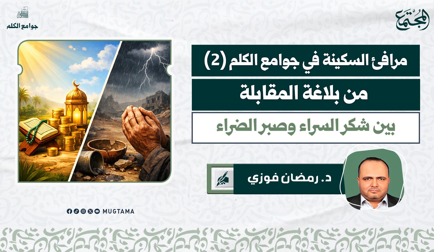 ففي «السرّاء» -وهي صيغة تدل على وفرة النعم واتساعها- يأتي «الشكر» استجابةً واعية من قلب المؤمن الذي يعلم أن هذا الخير مصدره المنعم سبحانه، وهو ليس مجرد انفعالٍ عابر ومن دقائق البيان أن الخير لم يُجعل في النعمة ذاتها، بل في فعل الشكر (شكر فكان خيراً له)، وكأن النعمة قد تكون ابتلاءً، أما الشكر فهو الذي يحوّلها إلى نعمةٍ حقيقية.