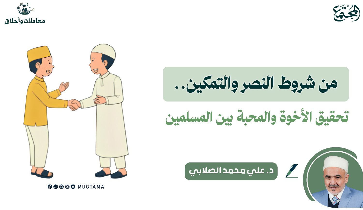 من شروط النصر والتمكين.. تحقيق الأخوة والمحبة بين المسلمين
