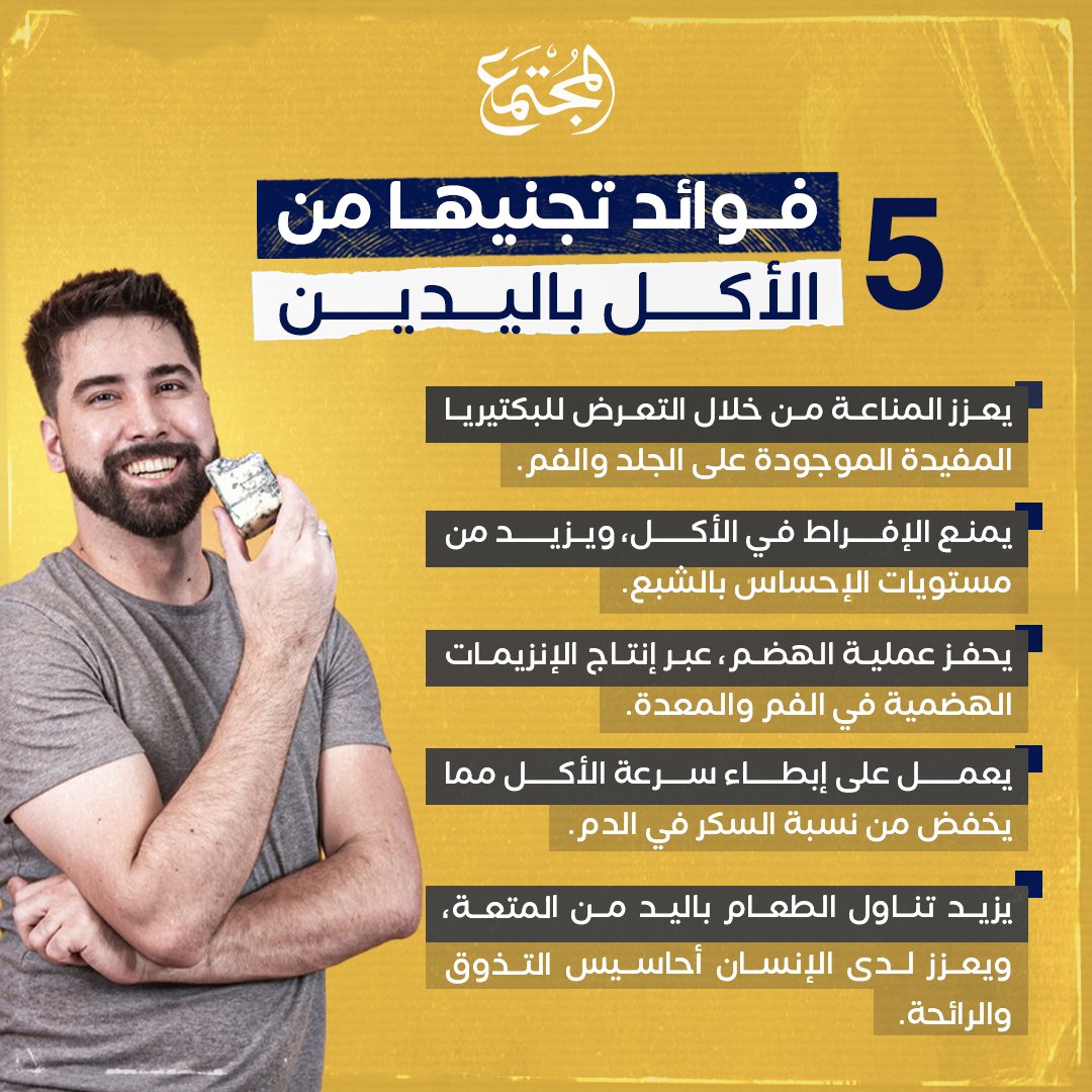5- تناول الطعام باليد يزيد المتعة، ويعزز لدى الإنسان أحاسيس التذوق والرائحة، ومدى نضج الطعام وكونه طازجاً أم لا.