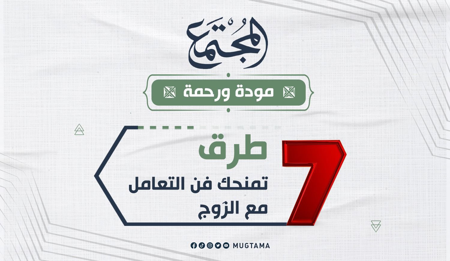 7- التسامح والصفح والعفو، والتغافل عن الزلات، فالحياة الزوجية لا تخلو من المشكلات والمشاحنات بين الزوجين، لذلك يجب المبادرة بالكلمة الطيبة، وعدم الخصام، أو إطالة الهجر، بل اتباع اللين وحسن القول، والبحث عن الإيجابيات، والقواسم المشتركة، بما يعزز المودة داخل أوساط الأسرة.