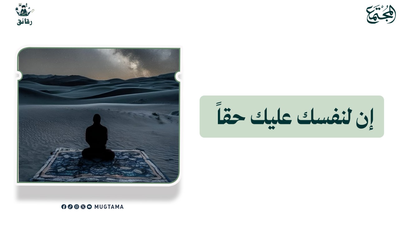 حَقًّا، ولِنَفْسِكَ عَلَيْكَ حَقًّا، ولأَهْلِكَ عَلَيْكَ حَقًّا، فَأَعْطِ كُلَّ