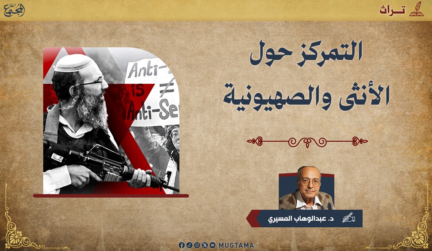 وهذا هو النمط نفسه الذي وجدناه في حركة التمركز حول الأنثى، فمن جهة ثمة تأكيد لتفرد اليهود وعداء الأغيار لهم لا يختلف كثيرًا عن اتجاه حركة التمركز حول الأنثى نحو إعلان الحرب على الرجال، ومن جهة أخرى ثمة محاولة نشطة تبذل لدمج اليهود في عالم الأغيار والذوبان فيه، لا تختلف بدورها كثيرًا عن محاولة الأنثى الذوبان في الرجل وظهور الـ uni - sex. والعالم الغربي الذي ساند الدولة الصهيونية (التي تحاول تفكيك العالم العربي والإسلامي سياسيًا وحضاريًا) يساند بنفس القوة حركات التمركز حول الأنثى في بلادنا (ولعل نشاط السفارة الهولندية في القاهرة في هذا المضمار تعد مثلًا واضحًا على ذلك يستحق المزيد من الدراسة).