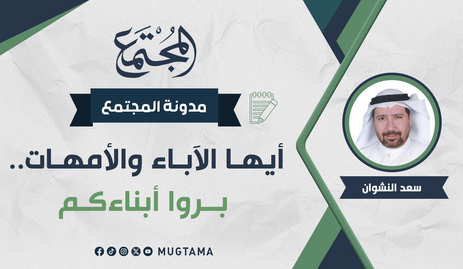 قد يبدو عنوان المقال معكوساً، ولكنه مقصود، فالعادة مطالبة الأبناء ببر الآباء والأمهات، وهذا دائماً ما تتحدث عنه خطب الجمعة ودروس المساجد والرسائل التربوية التلفزيونية والإذاعية وغيرها، ولكن نادراً ما نشاهد مطالبة الآباء والأمهات ببر الأبناء.
