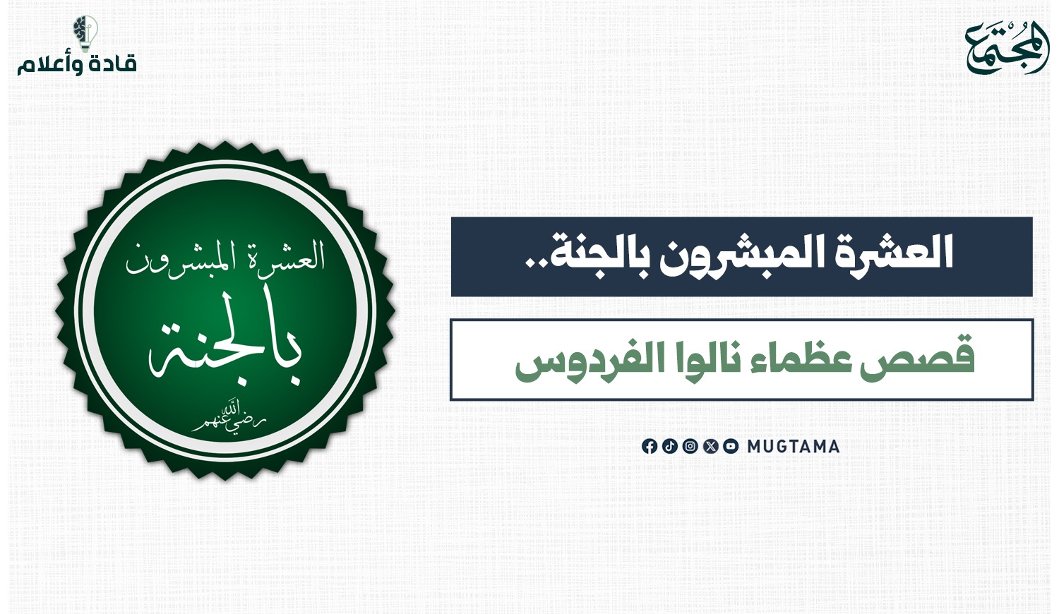 هل تتخيل أن تُمنح وعداً إلهياً بدخول الجنة وأنت ما زلت تسير على الأرض؟ هذا هو الشرف العظيم الذي ناله العشرة المبشرون بالجنة؛ أبطال الإسلام الذين جمعهم النبي محمد صلى الله عليه وسلم في موطن واحد ليشهد لهم بالخير والمغفرة، فعن عبد الرحمن بن عوف أن النبي صلى الله عليه وسلم قال: «أبو بكر في الجنة, وعمر في الجنة, وعثمان في الجنة, وعلي في الجنة, وطلحة في الجنة, والزبير في الجنة, وعبد الرحمن بن عوف في الجنة, وسعد بن أبي وقاص في الجنة, وسعيد بن زيد في الجنة, وأبو عبيدة بن الجراح في الجنة» رواه الترمذي وصححه الألباني.