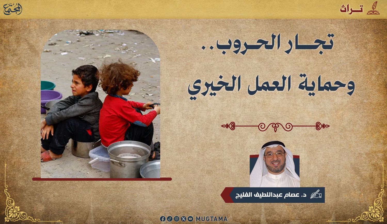 وبالتالي، فالحروب والتجار اسمان لا ينفصلان، وجسمان لا ينقسمان، ودعك من قضية الجانب الإنساني، ويجوز أو لا يجوز، فتاجر الحرب يعمل بمليار دولار بصمت، ويتبرع بمليون دولار للأعمال الخيرية، ويدفع مثلها للدعاية الإعلامية لها!