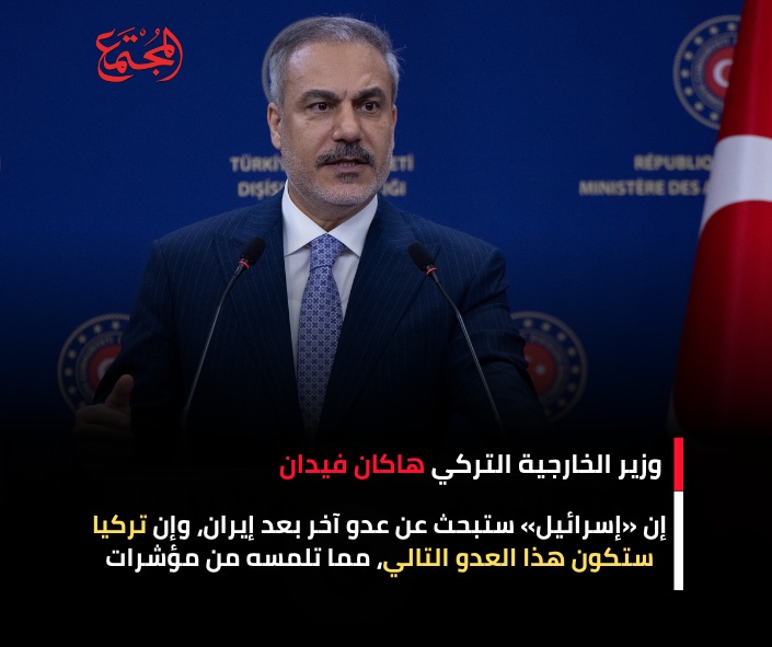 تلفزيوني، قال وزير الخارجية التركي هاكان فيدان: إن «إسرائيل» ستبحث عن عدو آخر