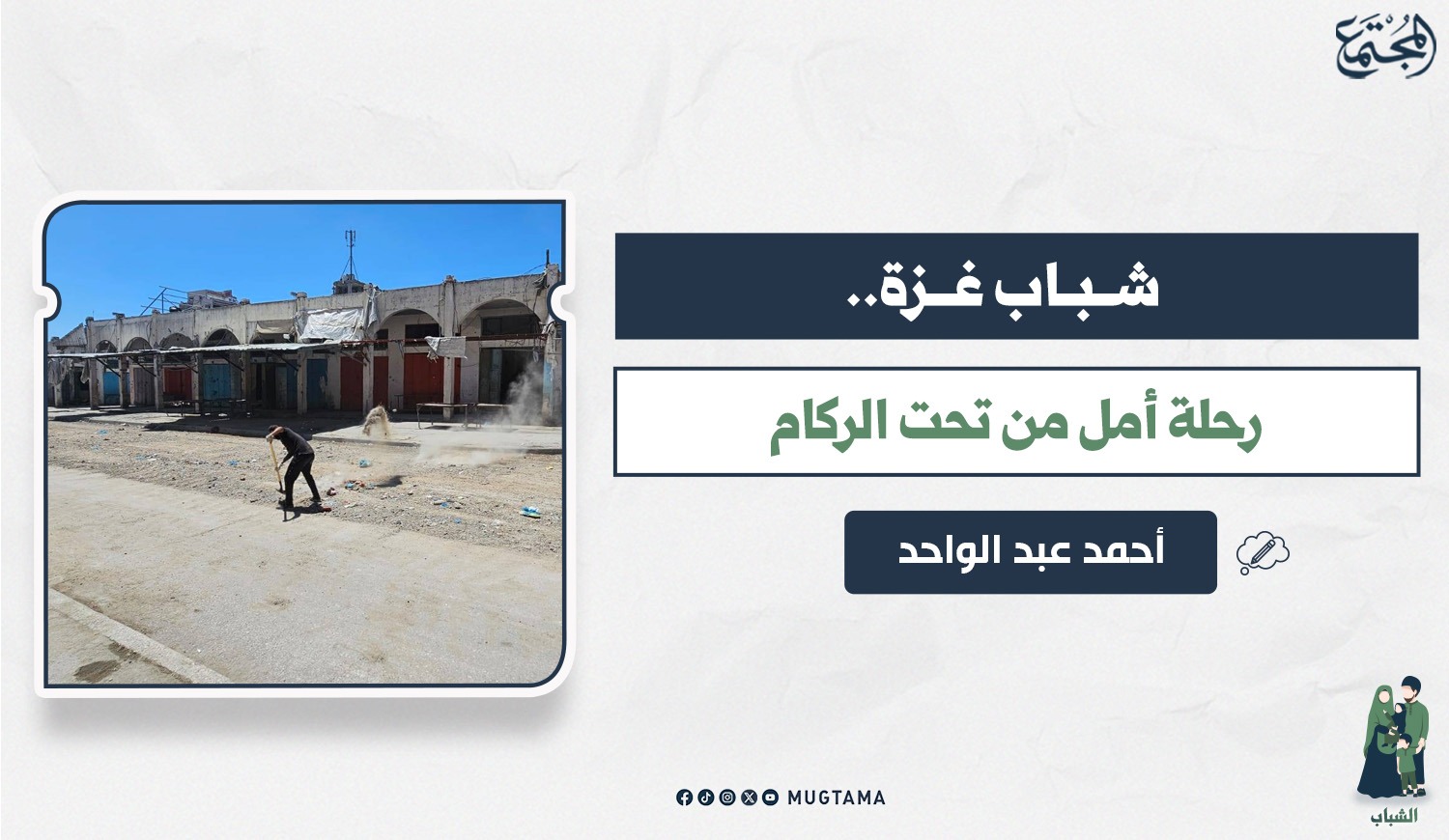 الركام، تتكالب الهموم والضغوط على الشباب في غزة، ليعود من جديد إلى نقطة الصفر،