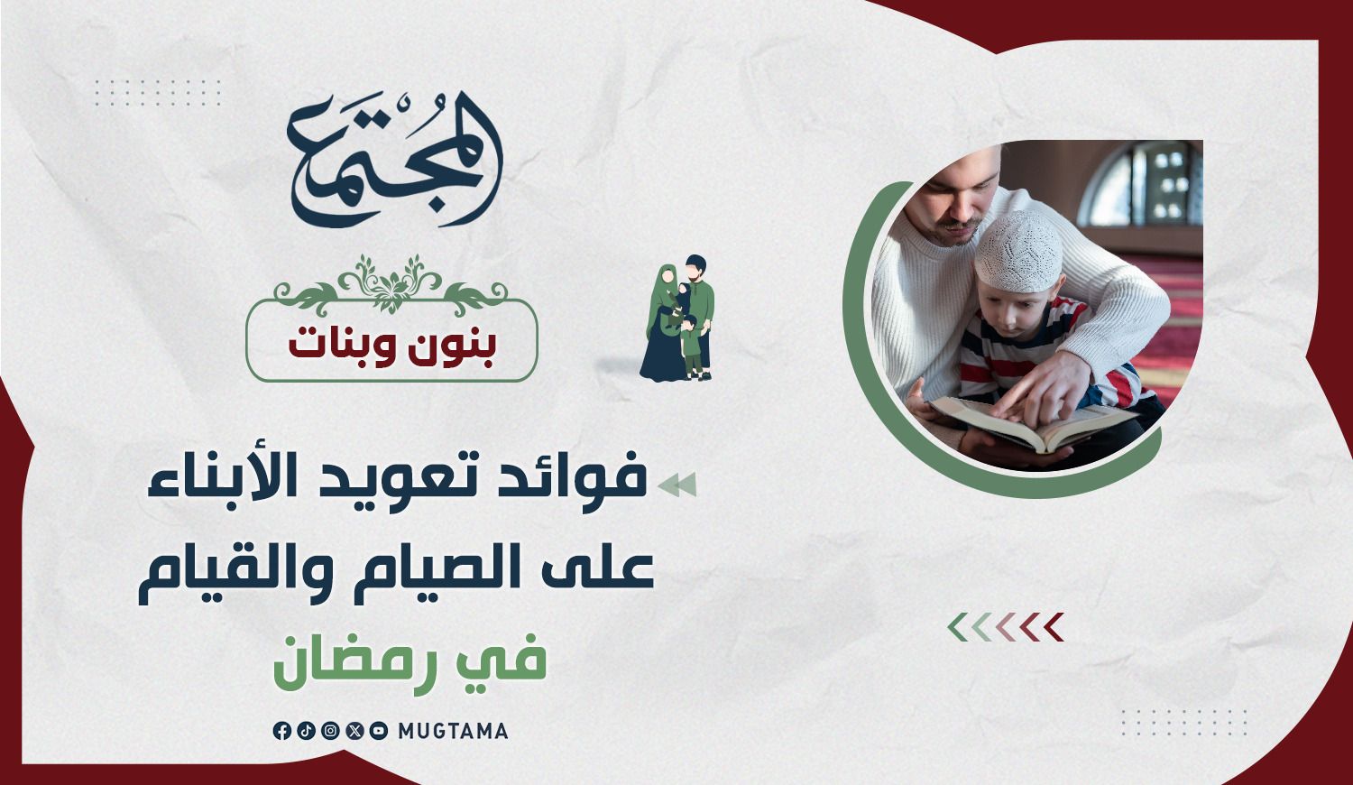 خلال مشاركة الأبناء عائلاتهم في الصيام والسحور والفطور والقيام وغيرها من