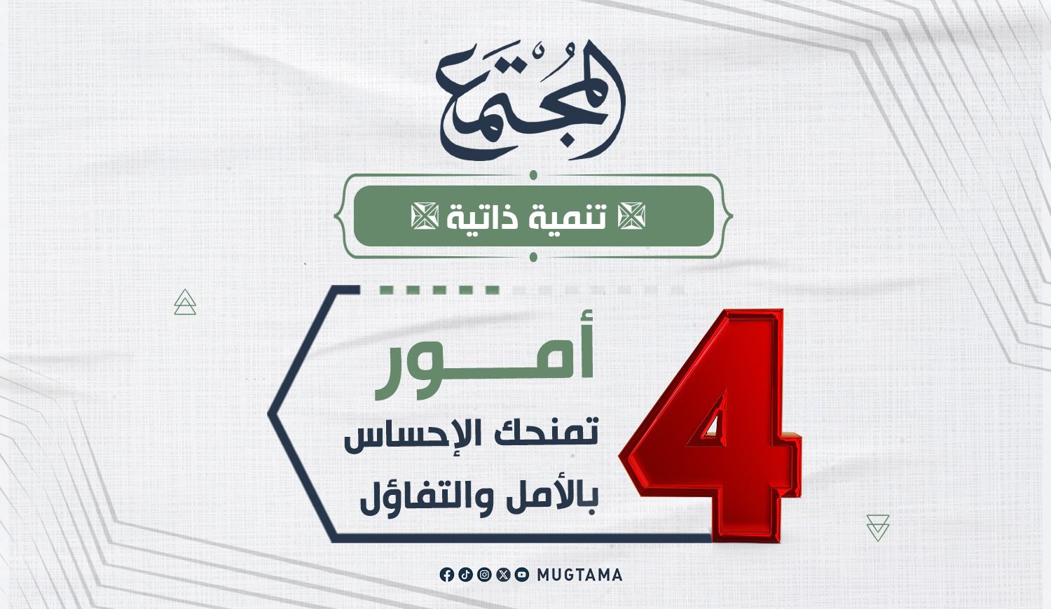 لكن الحال تختلف في الإسلام، من خلال 4 أمور تمنح المرء الأمل والتفاؤل، هي: