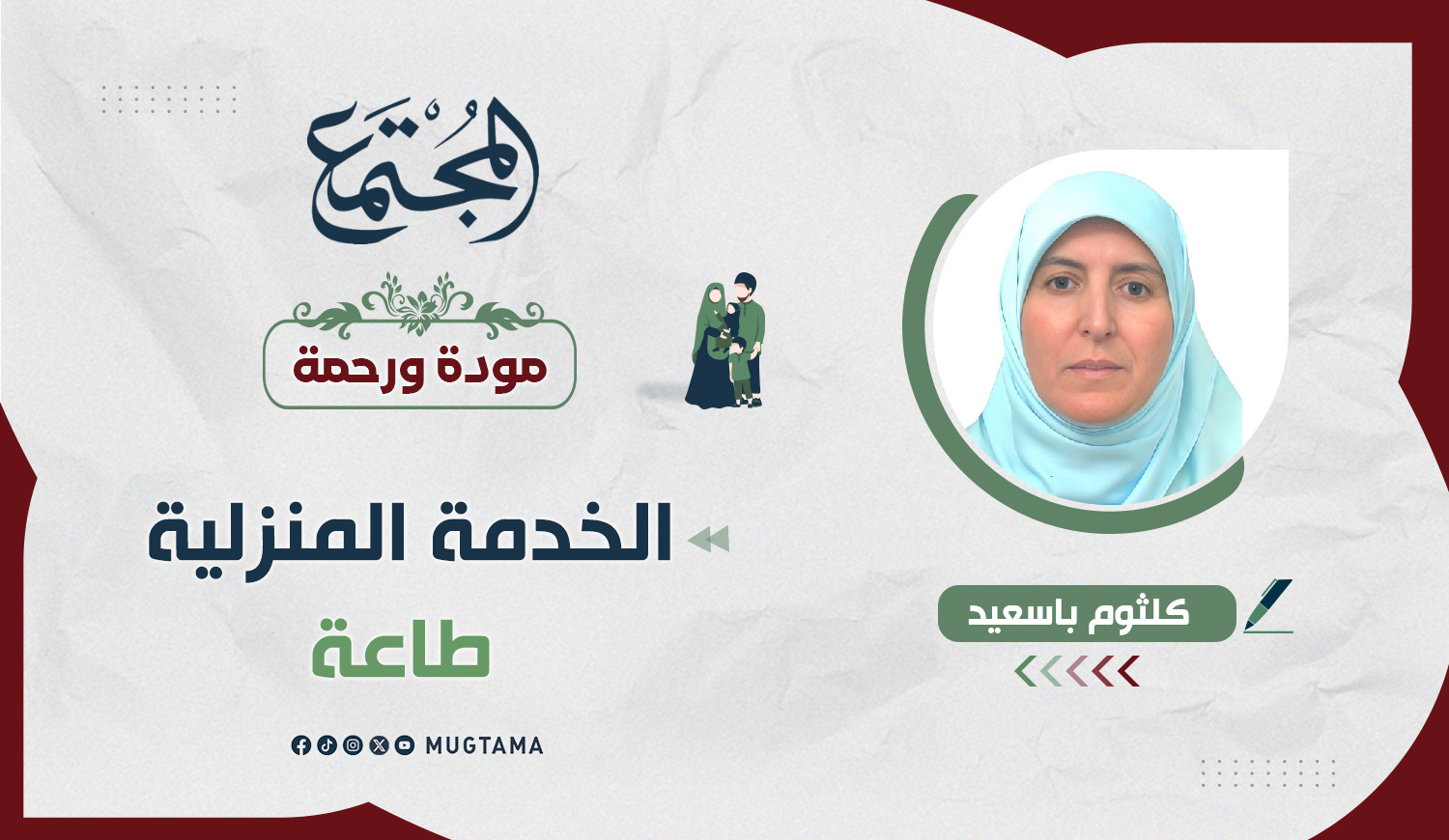 أسرتها وأبنائها طاعة لله، ورسالة سامية.